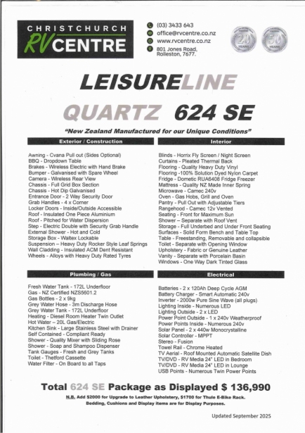 - All Leisureline caravans in stock have the SE 'South Island exclusive package'.